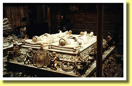 スペイン王カルロス1世の誕生西暦1516年、アラゴン王フェルナンド2世が亡くなった。彼の妻のカスティーリャ女王イサベル1世は既に亡くなっており、カスティーリャ王位は二人の娘のフアナが継承していた。とはいえ、そのカスティーリャ女王フアナは精神面で重い病気を患っていた為に、父のフェルナンド2世がアラゴン王国のみならず、カスティーリャ王国をも取り仕切っていた。そんなフェルナンド2世が亡くなったということで、継承者はベルギーで生まれたブルゴーニュ家の少年シャルルしかいなかったんだ。ちなみに、下の画像はスペインのカトリック両王、すなわちフェルナンド2世とイサベル1世のお墓なんだ。スペイン南部アンダルシア地方の古都グラナダの王室礼拝堂で見ることができる。